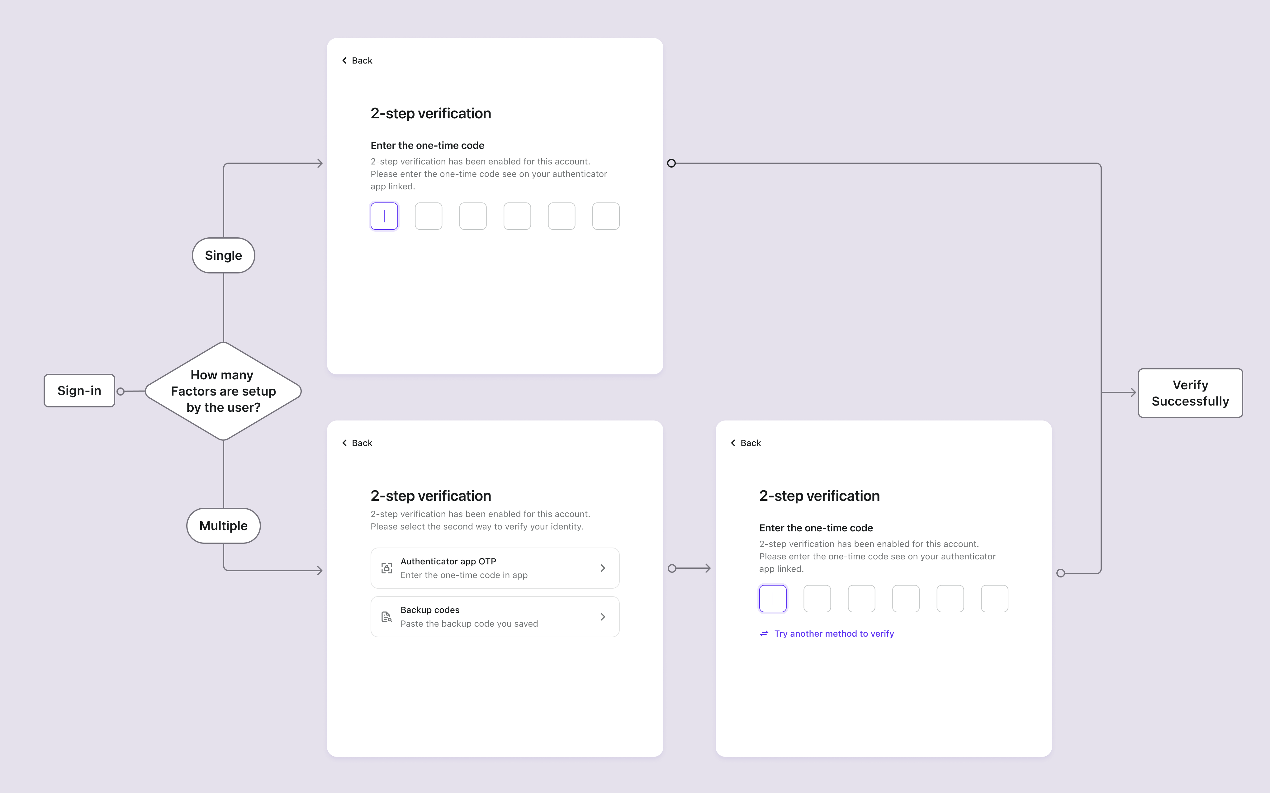 - If the primary factor is the same as the sign-up identifier (e.g., SMS or email), it will be pre-verified, allowing users to skip the verification step and proceed directly to the next step (e.g., "Add another one 2-step verification" or "Save your backup factors").